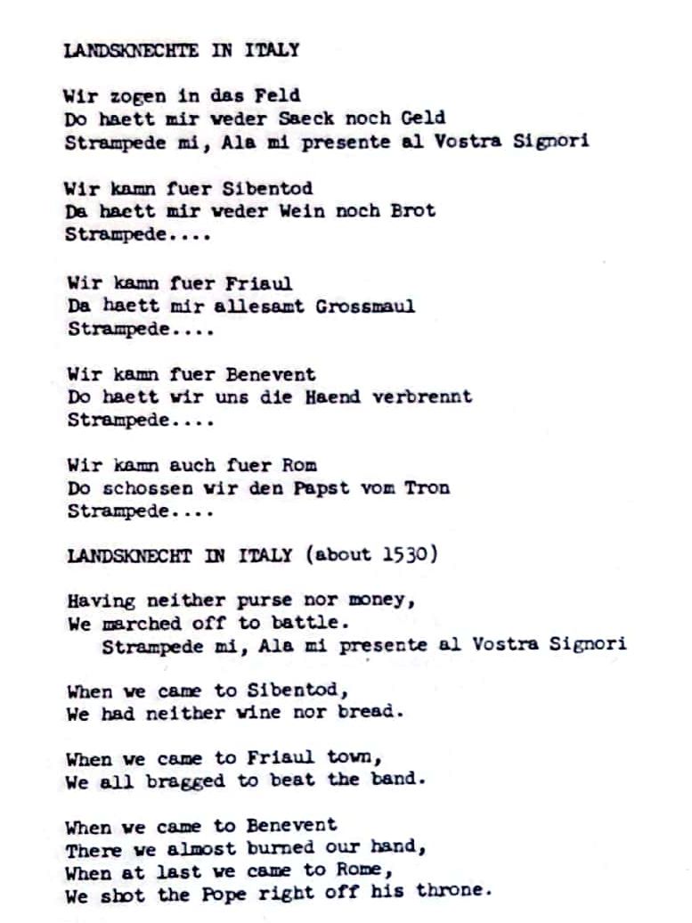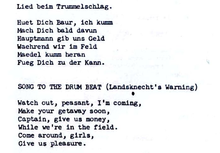 Plusieurs chansons parlent des landsknecht, des soldats de l'époque. Si vous vous intéressez aux évènements de cet époque je vous recommande le podcast suivant :